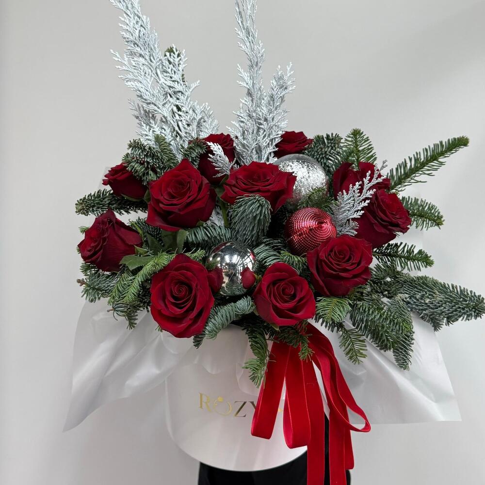 Коробка шляпная - 1 шт. Туя - 2 шт. Флористическая губка (оазис) - 1 шт.