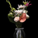 Агапантус - 1 шт. Антуриум - 1 шт. Хризантема одноголовая - 2 шт. Гладиолус - 1 шт. розы - 3 шт. Нерине Боудени Бианканев - 1 шт.