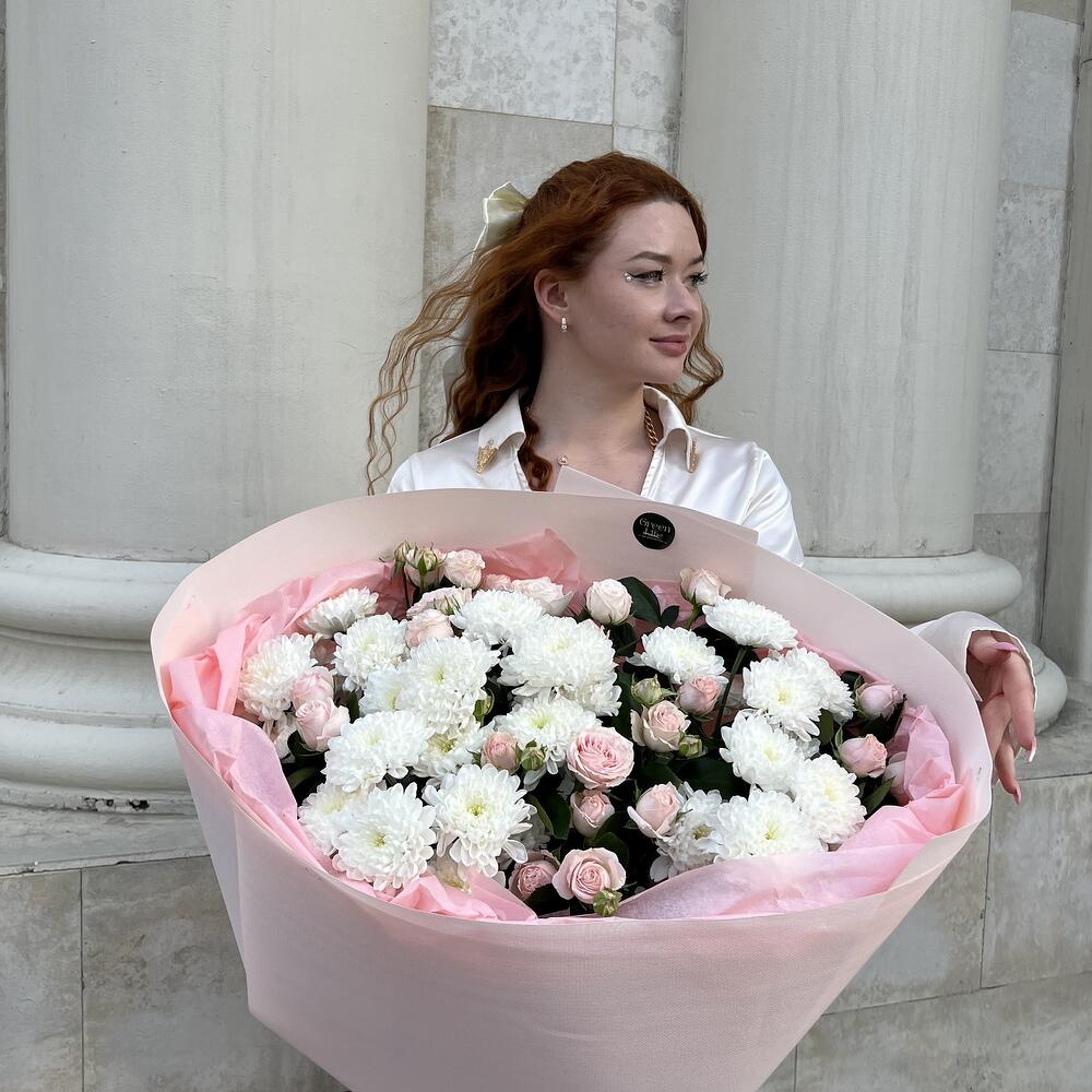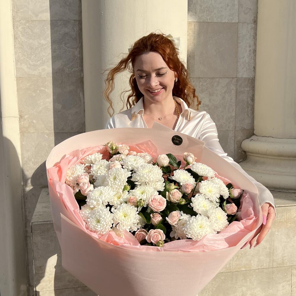 Хризантема кустовая - 5 шт. Спрей роза - 5 шт.