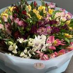 Альстромерия - 20 шт. Тишью - 4 шт. Салфетки - 6 шт. лента рапсовая - 3 шт.