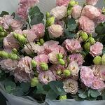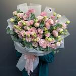 Эвкалипт - 9 шт. Эустома - 20 шт. Лента атласная - 3 шт. Тишью - 4 шт. аква бумага - 8 шт.