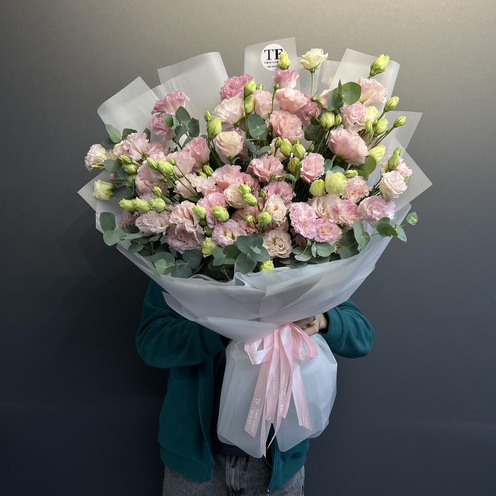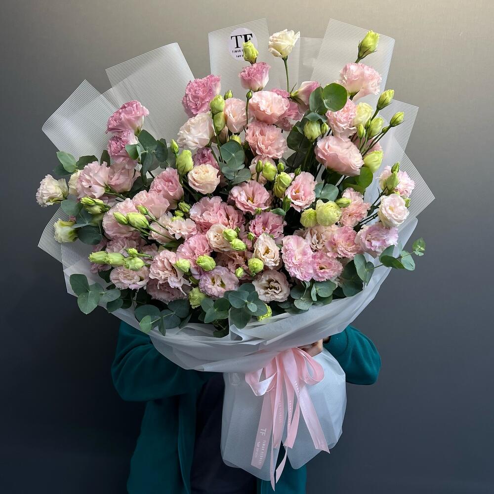 Эвкалипт - 9 шт. Эустома - 20 шт. Лента атласная - 3 шт. Тишью - 4 шт. аква бумага - 8 шт.