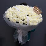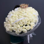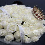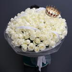 Роза белая - 101 шт. тишью белая - 6 шт. корона декор - 1 шт. аква бумага - 8 шт.