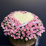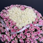 Роза - 301 шт. Лента атласная - 4 шт. Корзина плетеная - 1 шт.