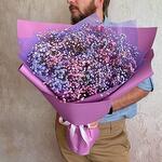 Лента атласная - 1 шт. Упаковка тишью - 2 шт. Гипсофила розовая - 5 шт. гипсофила сиреневая - 6 шт. упаковка пленка цветная - 4 шт.