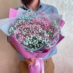 Лента атласная - 1 шт. Тишью - 2 шт. Гипсофила розовая - 4 шт. гипсофила бирюзовая - 3 шт. упаковка пленка цветная - 3 шт.
