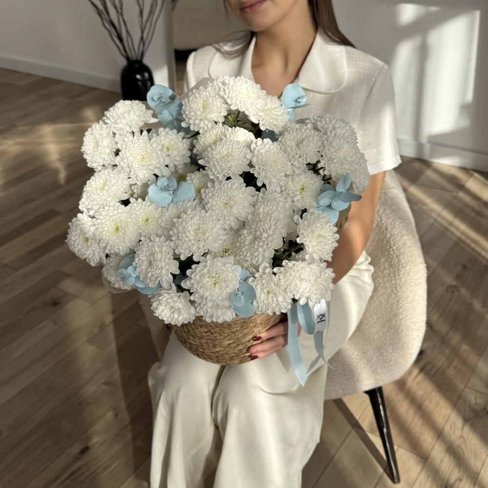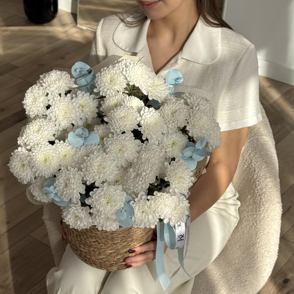 Хризантема кустовая - 7 шт. Эвкалипт Цинерея - 1 шт.