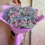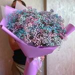 Лента атласная - 1 шт. Гипсофила розовая - 5 шт. Упаковка пленка матовая - 3 шт. Гипсофила голубая - 5 шт. Гипсофила фиолетовая - 5 шт. упаковка пленка цветная - 5 шт.
