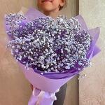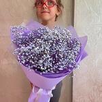 Лента атласная - 1 шт. Упаковка тишью - 2 шт. Упаковка пленка матовая - 2 шт. гипсофила сиреневая - 5 шт. упаковка пленка цветная - 3 шт.