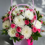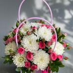 Очаровательная композиция из кустовой розы с добавлением хризантемы будет долго радовать получателя и подойдёт для любого повода будь то знак внимания или день рождение. Такая композиция будет отлично смотреться в любом Интерьере, а наш курьер бережно доставит её получателю в руки. 🌸