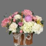 Роскошная корзина с белыми гортензиями, розовыми пионами и зеленью. Этот букет подчеркнёт вашу заботу и внимание. Идеален для романтических встреч и важных событий.