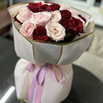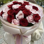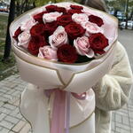 Роскошный для всех случаев букет. Неожиданное и оригинальное сочетание цвета в гармонии с формой бутонов двух сортов представленных роз ясно и доступно говорит: «признание» … всего, что не могу сказать словами - чувств, страсти, красоты, уважения, благодарности, профессионализма, намерений и даже признание своей оплошности). Этот букет вполне уместен для мамы, сестры, супруги, для невесты и любимой, для дамы сердца просто так, без повода, просто с Признанием!! Наслаждайтесь!