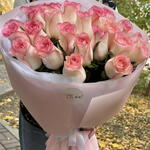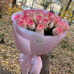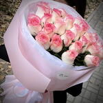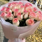 Кремово-розовый оттенок этих роз с чуть волнистыми краями нежнейших лепестков в букете, изящно оформленном в полупрозрачную упаковку аква бумаги обязательно поднимет настроение его обладателю. От этого букета исходит редкое сочетание силы и слабости, настойчивости и деликатности, пожелания, но не мольбы). Уместен для любого вида поздравления, выражения благодарности при достойном представления себя как личности. Наслаждайтесь!