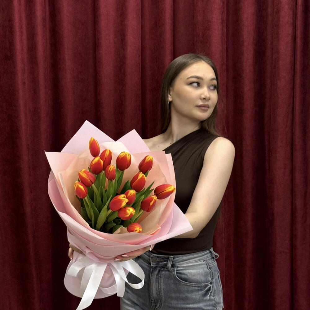 красно желтые тюльпаны - 15 шт.