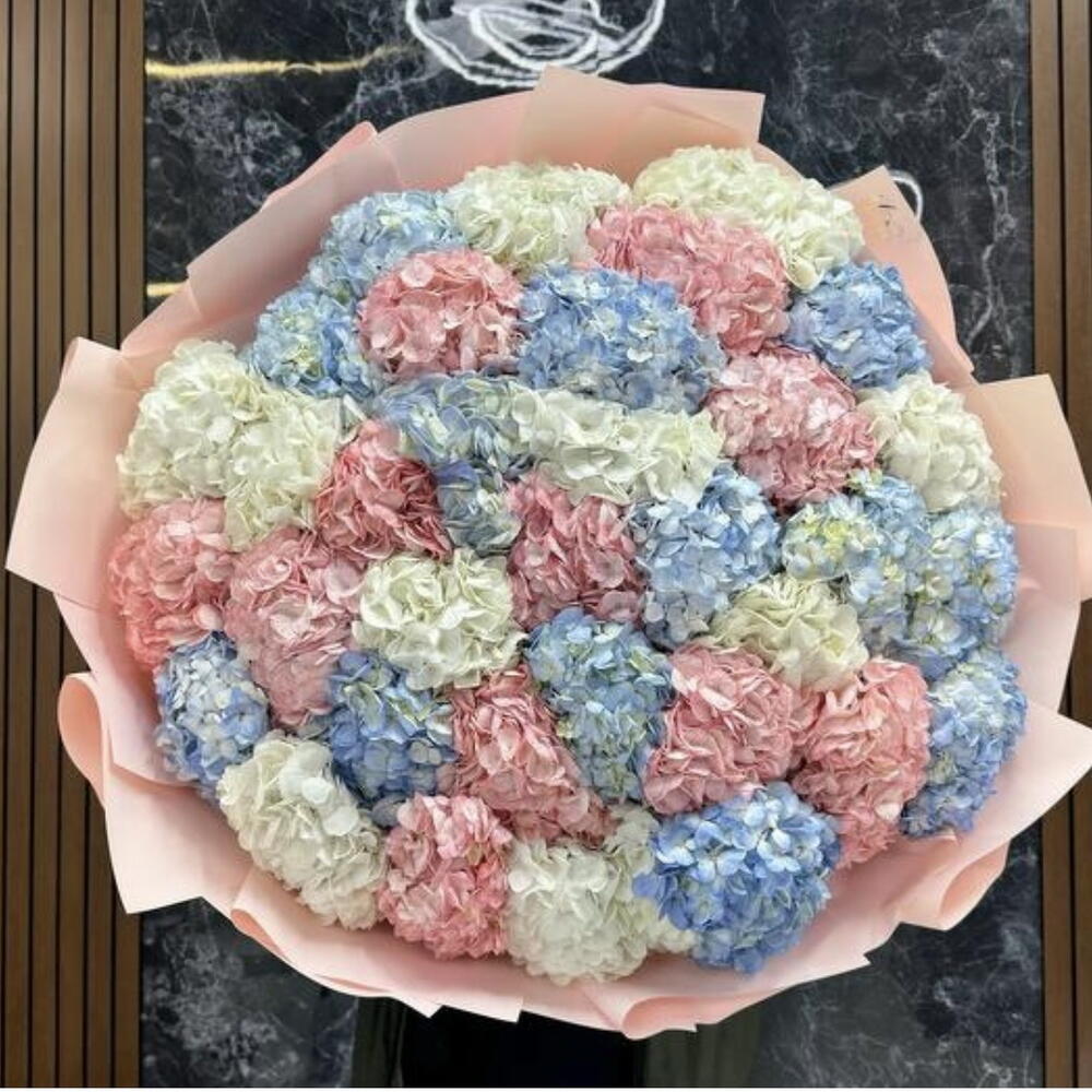 Огромный букет из 35 гортензий