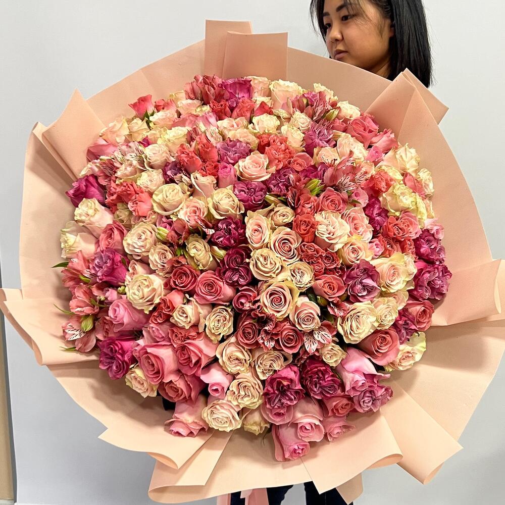 Альстромерия - 11 шт. Роза - 151 шт. Спрей роза - 11 шт.