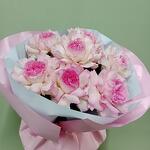 Изысканный букет с добавлением французских нежно розовых роз Порадует представителей прекрасного пола своей красотой ,ярким ароматом и невероятной стойкостью
