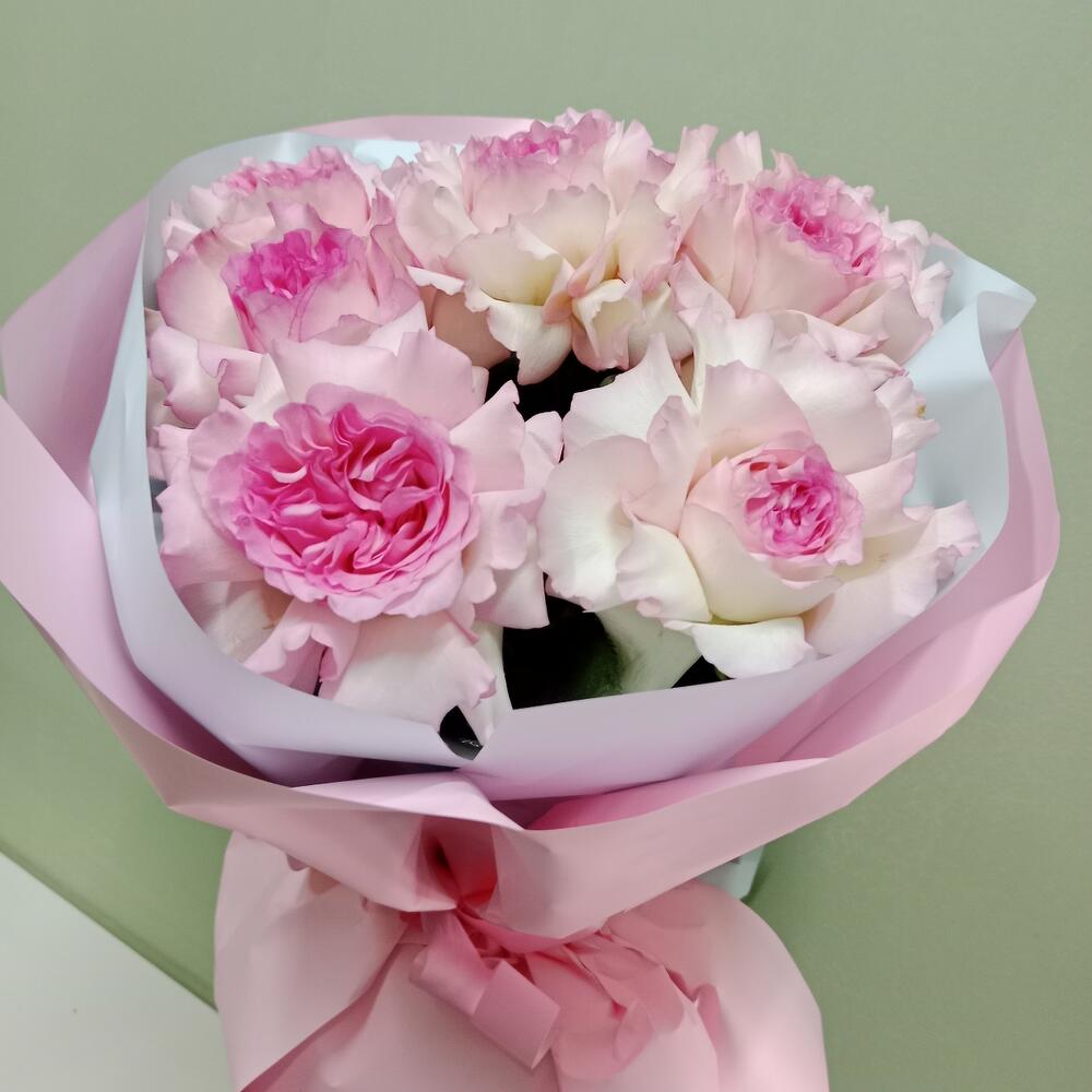 Изысканный букет с добавлением французских нежно розовых роз Порадует представителей прекрасного пола своей красотой ,ярким ароматом и невероятной стойкостью