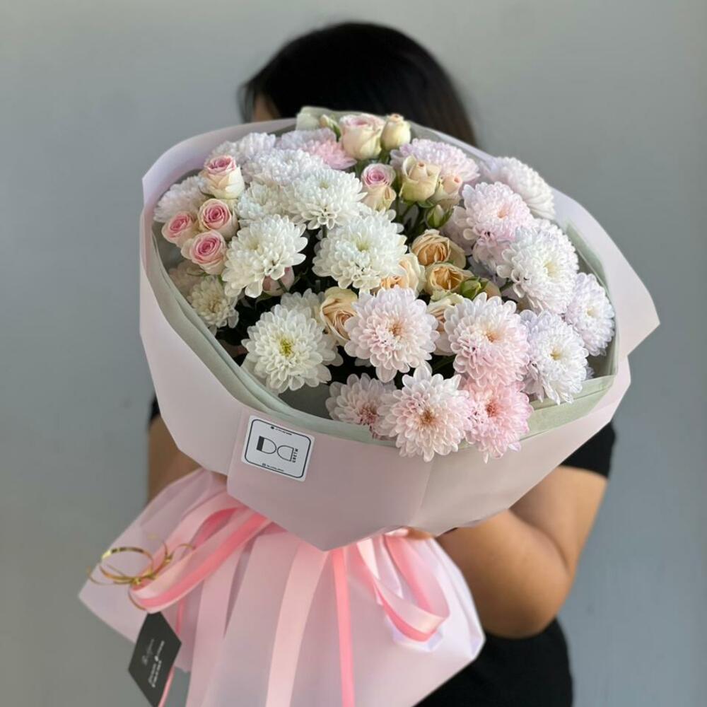 Кустовая роза - 3 шт. Хризантема - 5 шт.
