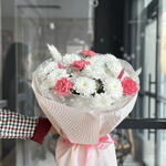 Хризантема кустовая - 5 шт. Диантус - 4 шт. перо искусственное - 4 шт.