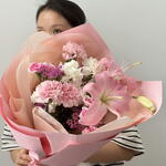 Wax flowers - 2 шт. diantus - 8 шт. lily pink - 1 шт. spray diantus - 4 шт. efcaliptus - 2 шт.