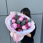 Эвкалипт - 1 шт. Кустовая роза - 4 шт. Пион Сара Бернар - 7 шт.