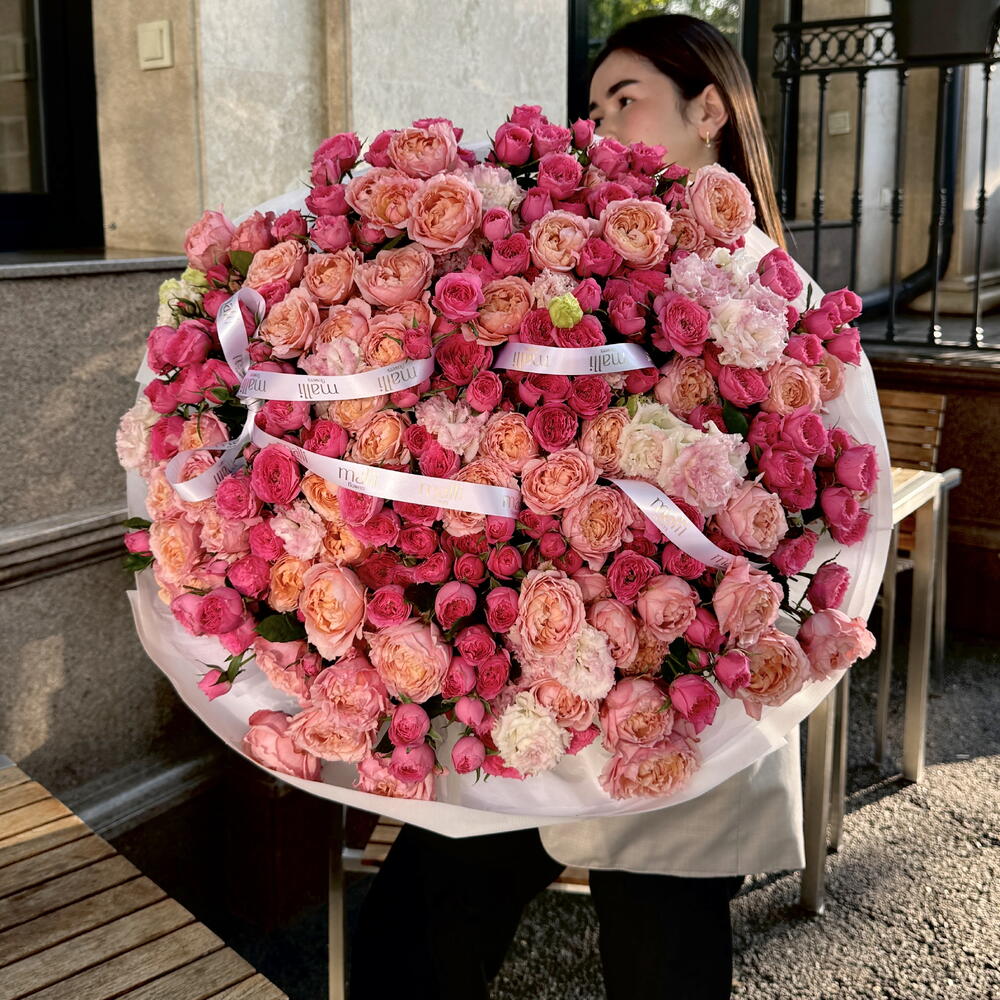 Эустома - 15 шт. джульетта кустовая роза пионовидная - 21 шт. софия кустовая роза - 21 шт.