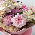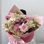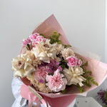 Ваксфлауэр - 3 шт. Солидаго - 2 шт. Хризантема кустовая - 4 шт. Диантус - 3 шт. диантус спрей - 3 шт. розы белые - 3 шт.