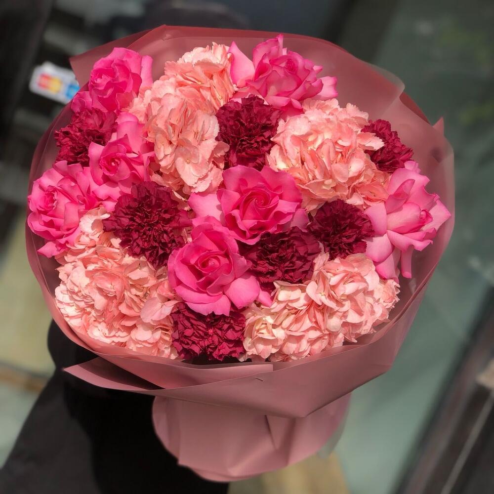 Гортензия - 4 шт. Роза - 7 шт. Гвоздика - 7 шт.