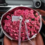 Не соответствует тому, что было на фото, от слова совсем. Как то не красиво розы стоят, все в разные стороны, не красиво. Про соответствие цвета вообще молчу