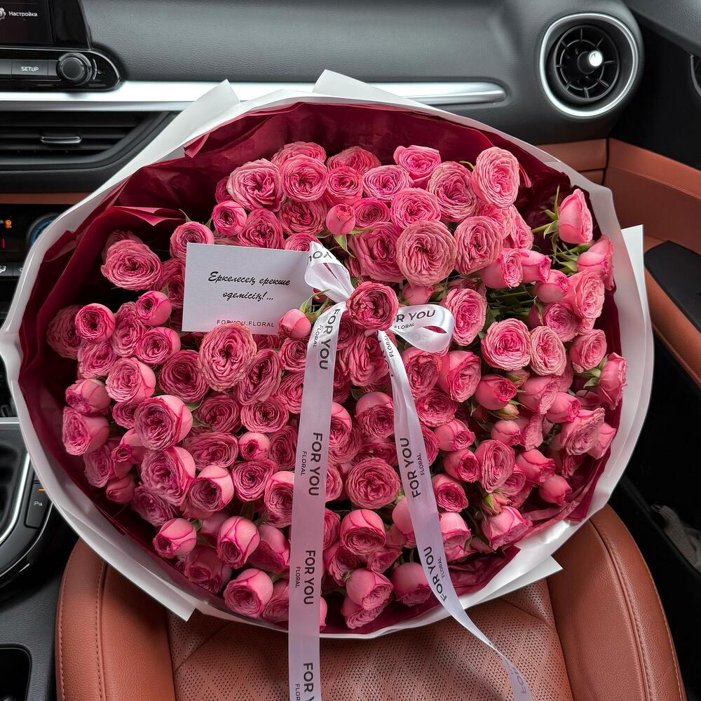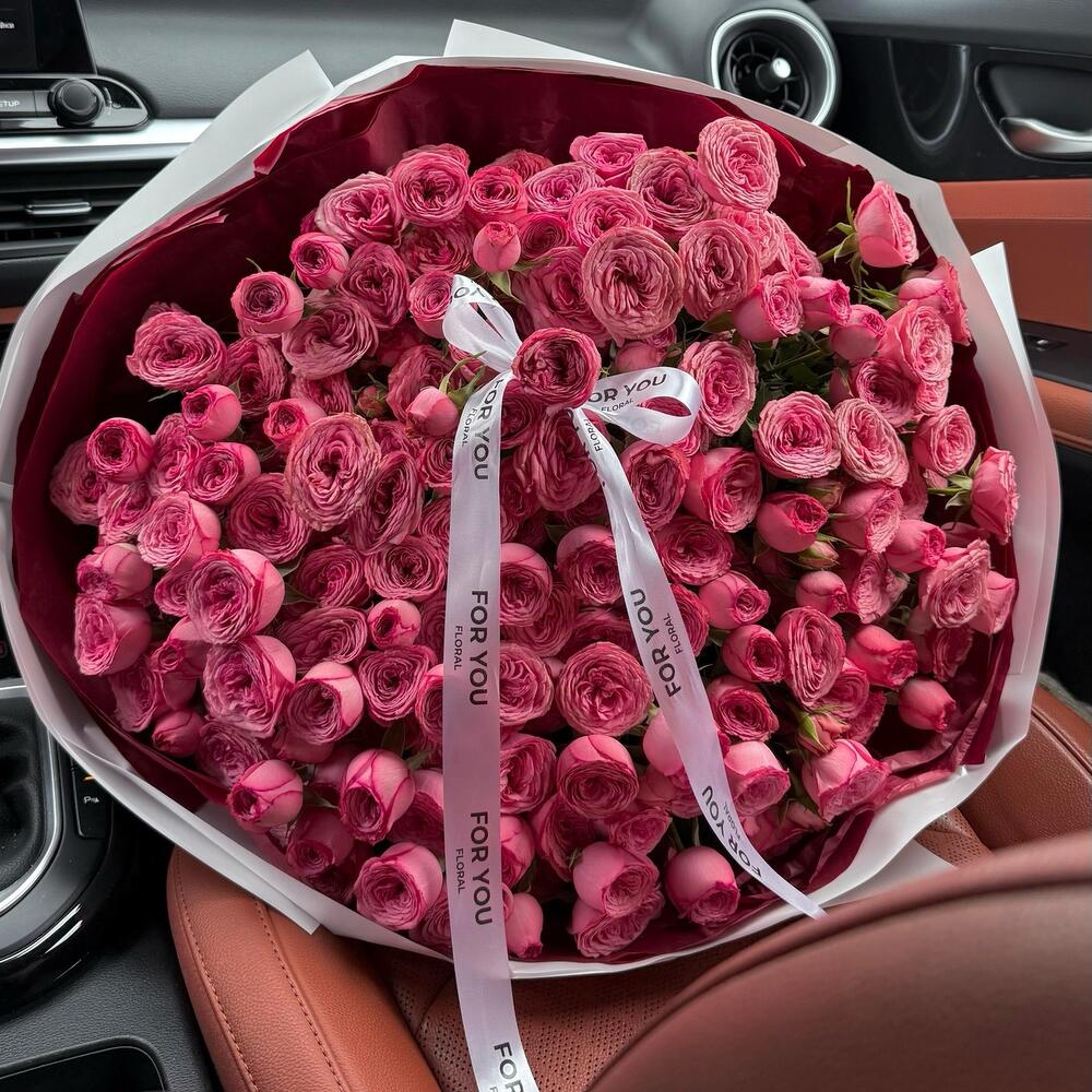 Не соответствует тому, что было на фото, от слова совсем. Как то не красиво розы стоят, все в разные стороны, не красиво. Про соответствие цвета вообще молчу