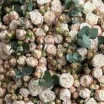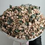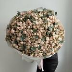 Эвкалипт - 25 шт. Лента атласная - 1 шт. Роза пионовидная кустовая - 101 шт. Дизайнерская упаковка - 6 шт.