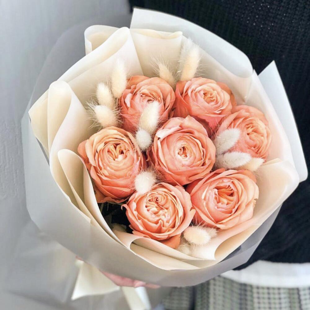 Роза Эквадор - 7 шт. Сухоцветы - 3 шт. Упаковка дизайнерская - 6 шт.