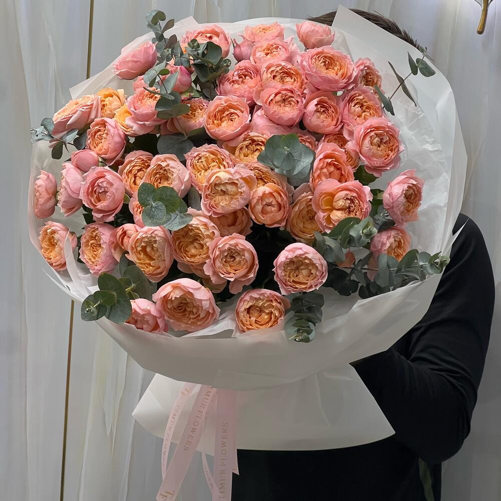 Ароматная Пионовидная Роза сорта Джульетта в премиальном оформление и с эвкалиптом Букет покоривший сердца многих!😍