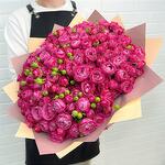 Кустовая роза - 51 шт. Лента атласная - 2 шт. Дизайнерская упаковка - 6 шт.