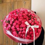 Не соответствует тому, что было на фото, от слова совсем. Как то не красиво розы стоят, все в разные стороны, не красиво. Про соответствие цвета вообще молчу