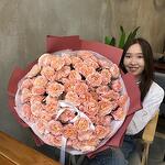 Не соответствует тому, что было на фото, от слова совсем. Как то не красиво розы стоят, все в разные стороны, не красиво. Про соответствие цвета вообще молчу