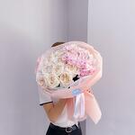 Гортензия - 1 шт. пионовидные розы - 9 шт.