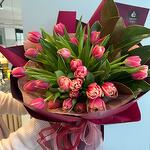 Тюльпан Пионовидный - 35 шт. Авторская упаковка - 1 шт. магнолия листья - 4 шт.