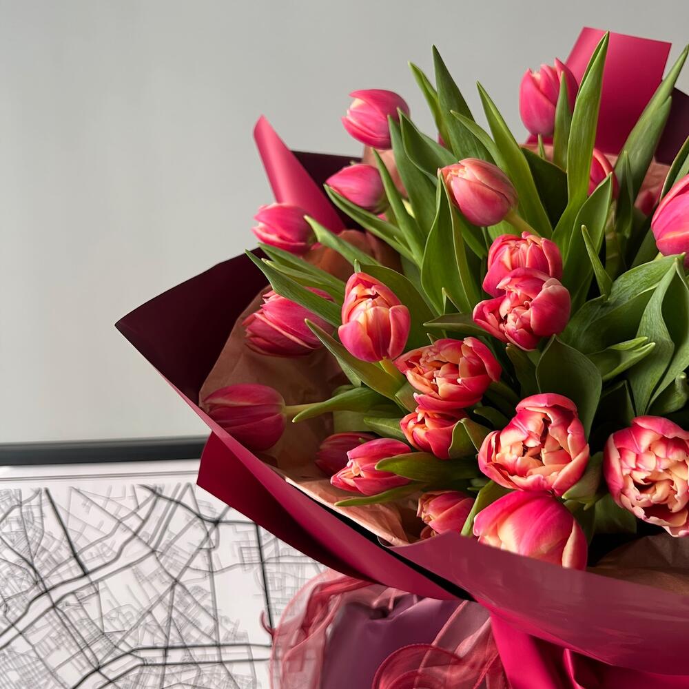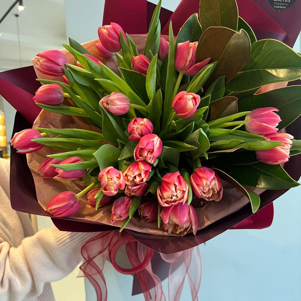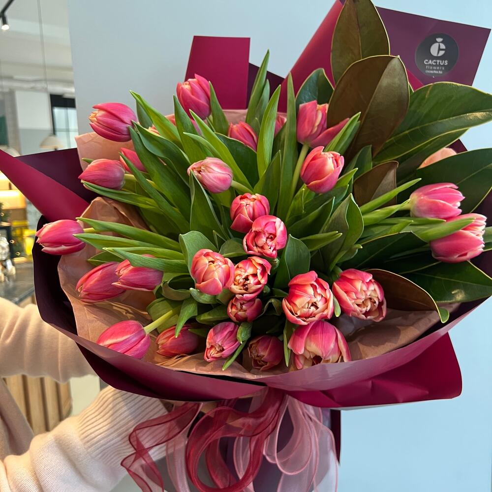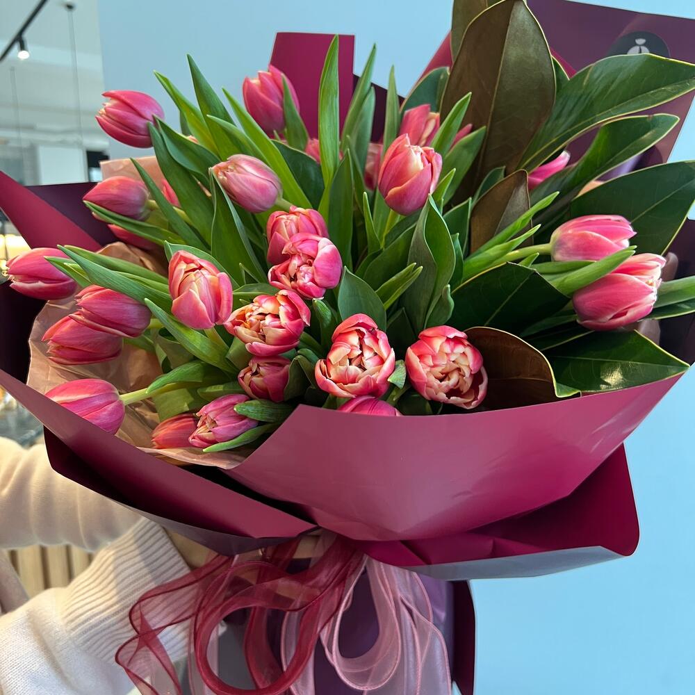 Тюльпан Пионовидный - 35 шт. Авторская упаковка - 1 шт. магнолия листья - 4 шт.