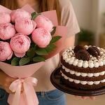 💐 Букет из пионов — воздушный, ароматный, символ нежности и романтики. Пышные бутоны в гармоничной упаковке станут идеальным акцентом для любого случая: день рождения, признание в любви или просто «без повода». 🍰 Торт Oreo — трёхслойный шоколадный бисквит с воздушным кремом и фирменным украшением из Oreo-печенья. Легкий, сладкий и запоминающийся вкус, который понравится и взрослым, и детям. 📦 Всё красиво упаковано и готово к вручению! Можно добавить открытку с подписью.