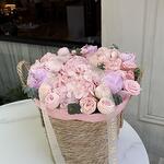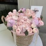 Эвкалипт - 2 шт. Кустовая роза - 5 шт. Гортензия розовая - 3 шт. пионы сара бернар - 5 шт.