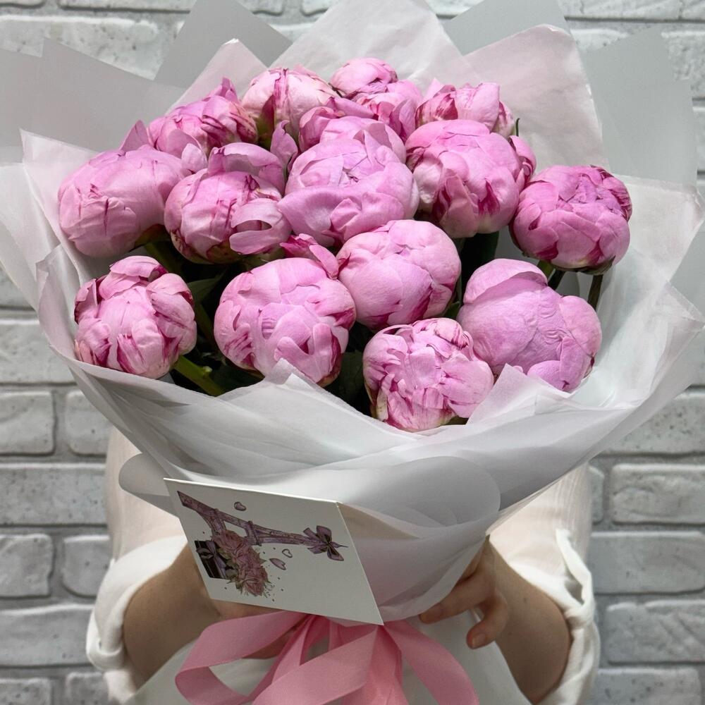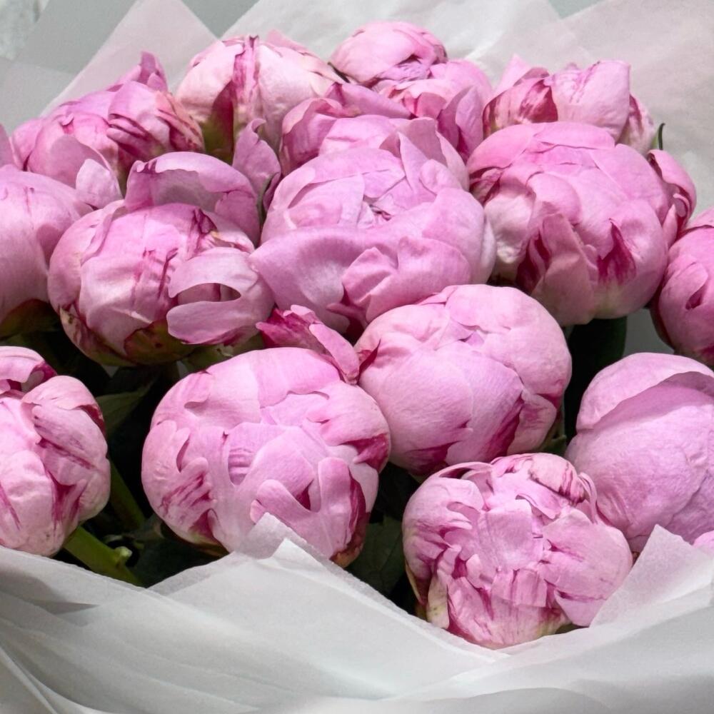 Лента - 1 шт. Калька - 4 шт. Матовая бумага - 6 шт. пионы голландские - 15 шт.
