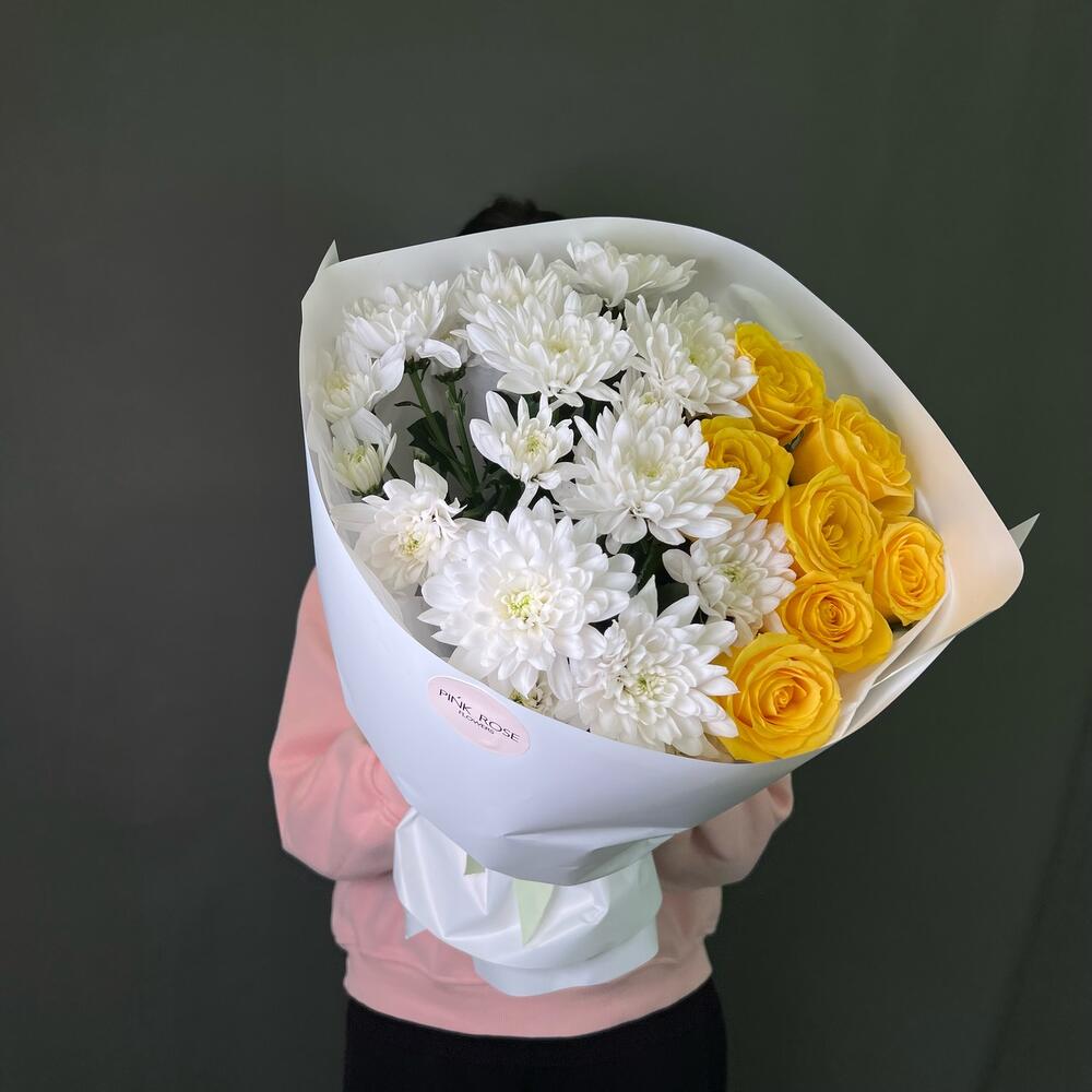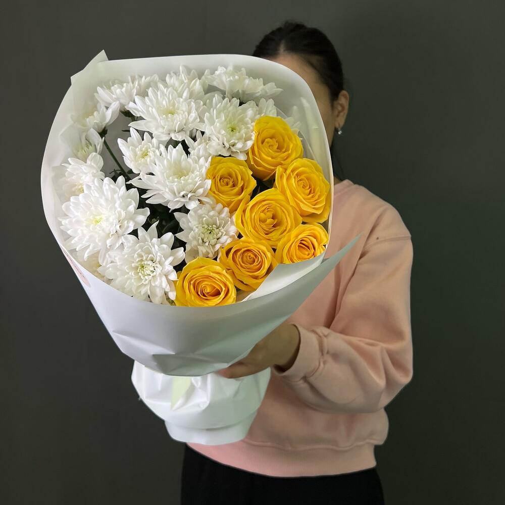 Хризантема кустовая - 3 шт. розы - 7 шт.