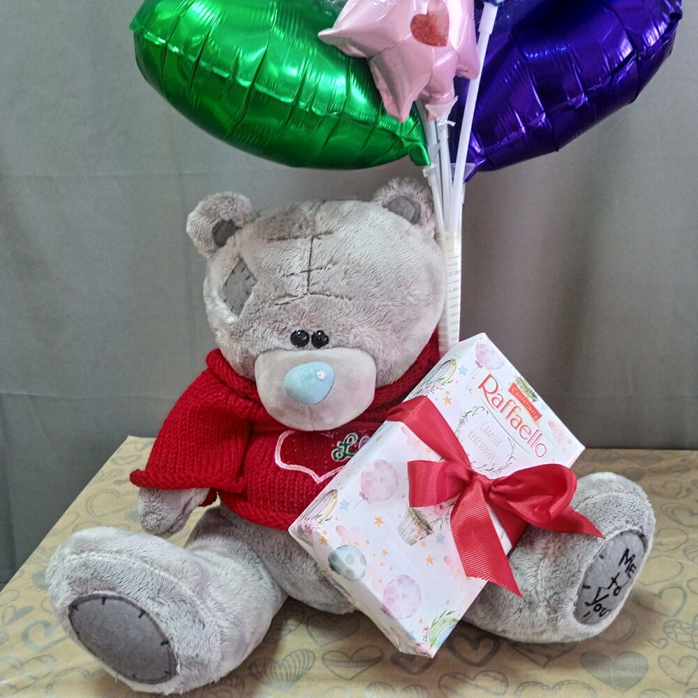 Мягкая игрушка медведь Фольгированные. сердца 10" Фольгированное сердце 18" Фольгированные звезды 5" Конфеты "rafaello "