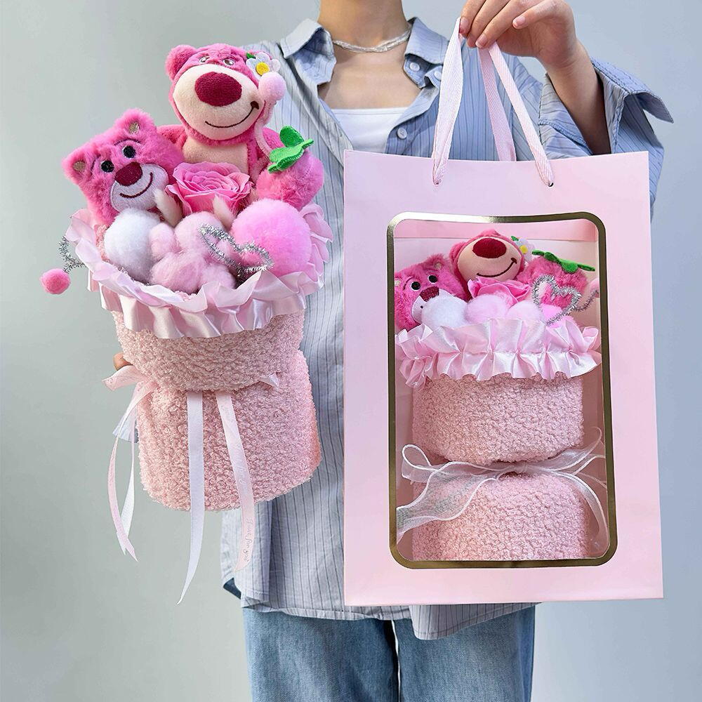 Нежный, тёплый и очень милый подарок, который вызывает эмоции с первого взгляда В сложенном виде — это очаровательный букет с плюшевыми мишками и декоративными элементами. После распаковки он превращается в мягкий и уютный плед, который приятно использовать каждый день. Идеальное сочетание красоты и практичности: не просто подарок «на один день», а вещь, которая будет радовать долго.