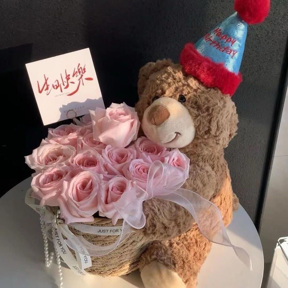 Нежный и эффектный подарок, который объединяет милую игрушку и роскошный букет Очаровательный плюшевый мишка держит букет из мыльных роз — цветов, которые выглядят как настоящие, но не вянут и долго сохраняют свой аккуратный вид. Такой подарок сразу создаёт вау-эффект и остаётся на память, украшая интерьер и радуя каждый день.
