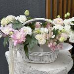 Обворожительная композиция из цветов в уютной корзине станет лучшим подарком для любого повода. Сочетание изящной лилии, четырех светлых альстромерий, элегантных семи эустом, комплиментировано легкой нежностью двух веток зелени и уникальной красотой амаранта. Этот цветочный ансамбль унесет в мир прикосновения красоты и гармонии.