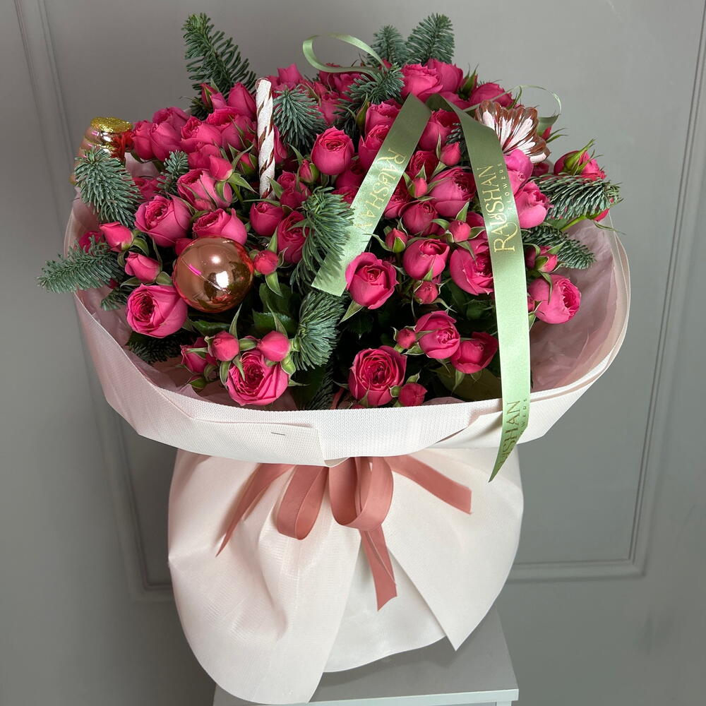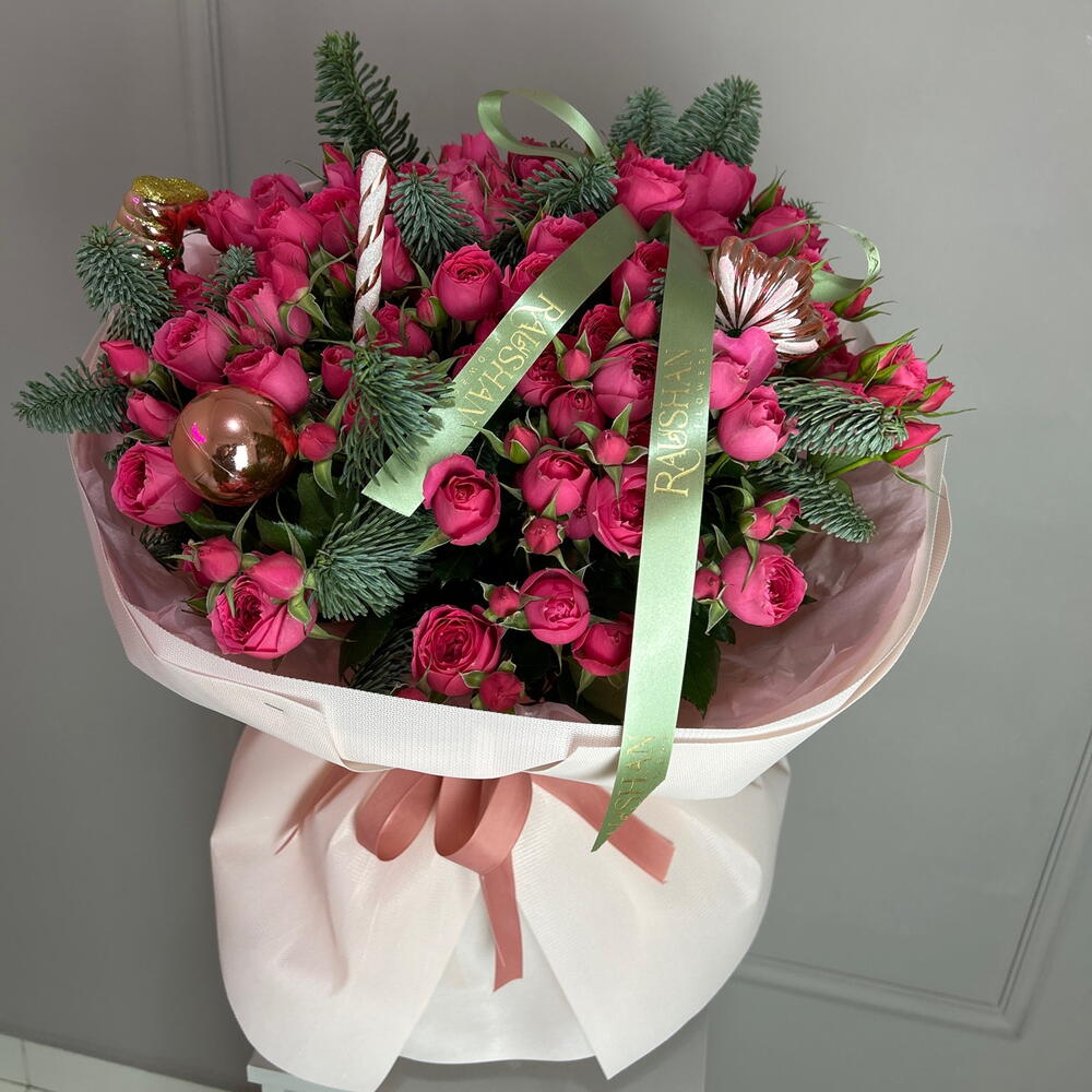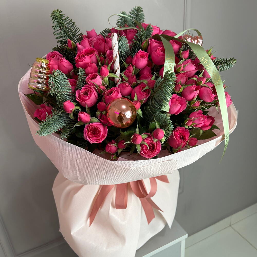 Кустовая роза - 13 шт. Нобилис - 2 шт. Игрушки елочные - 4 шт.