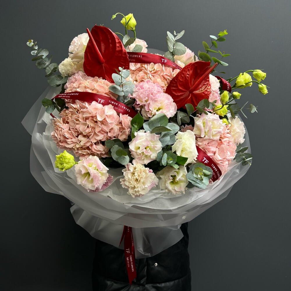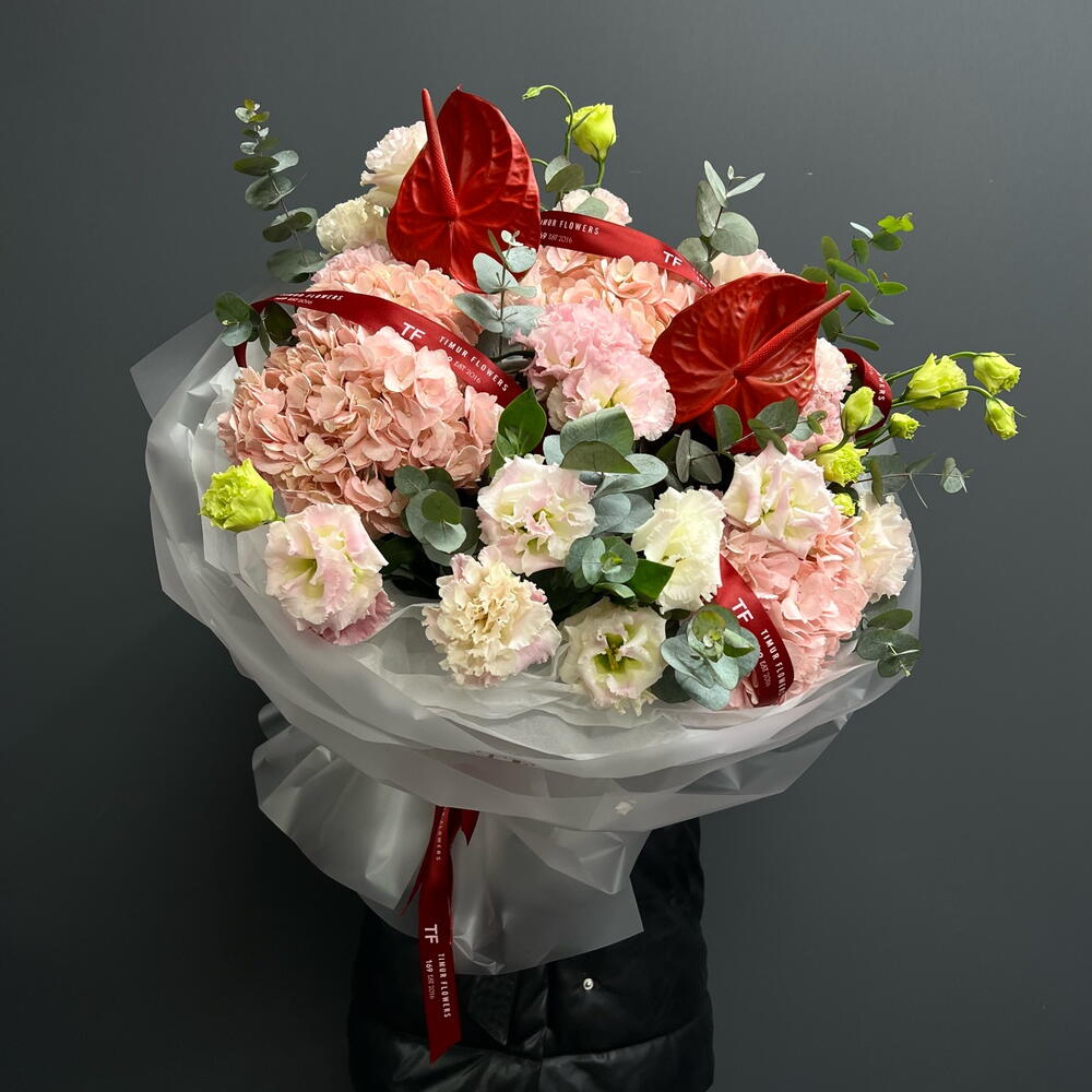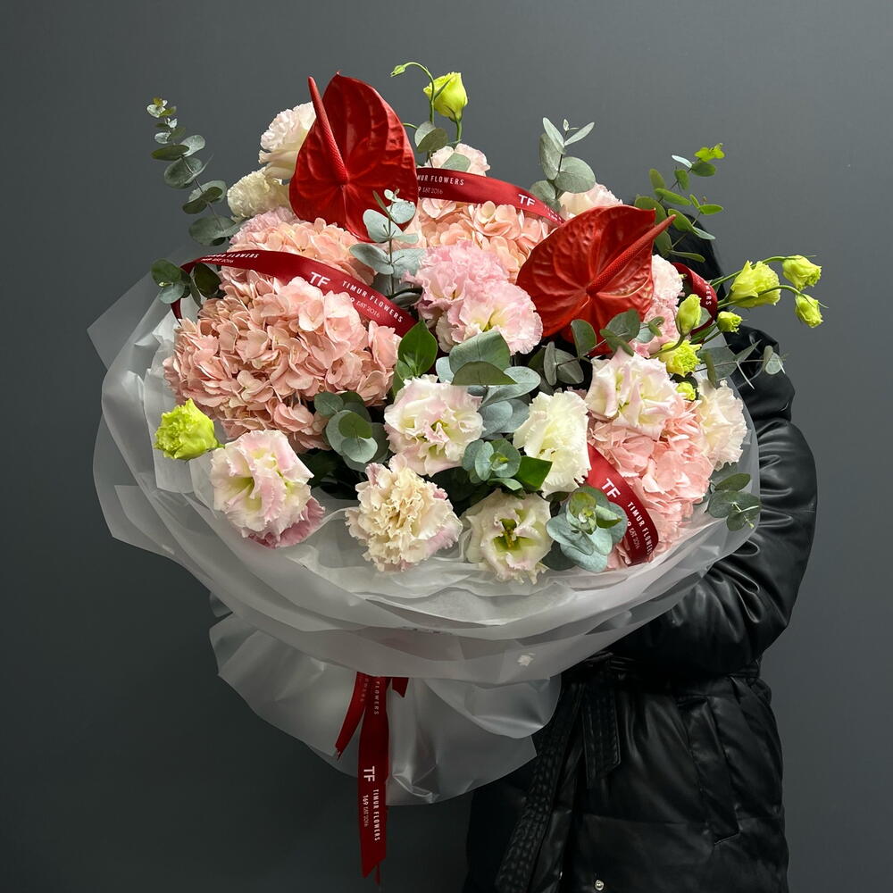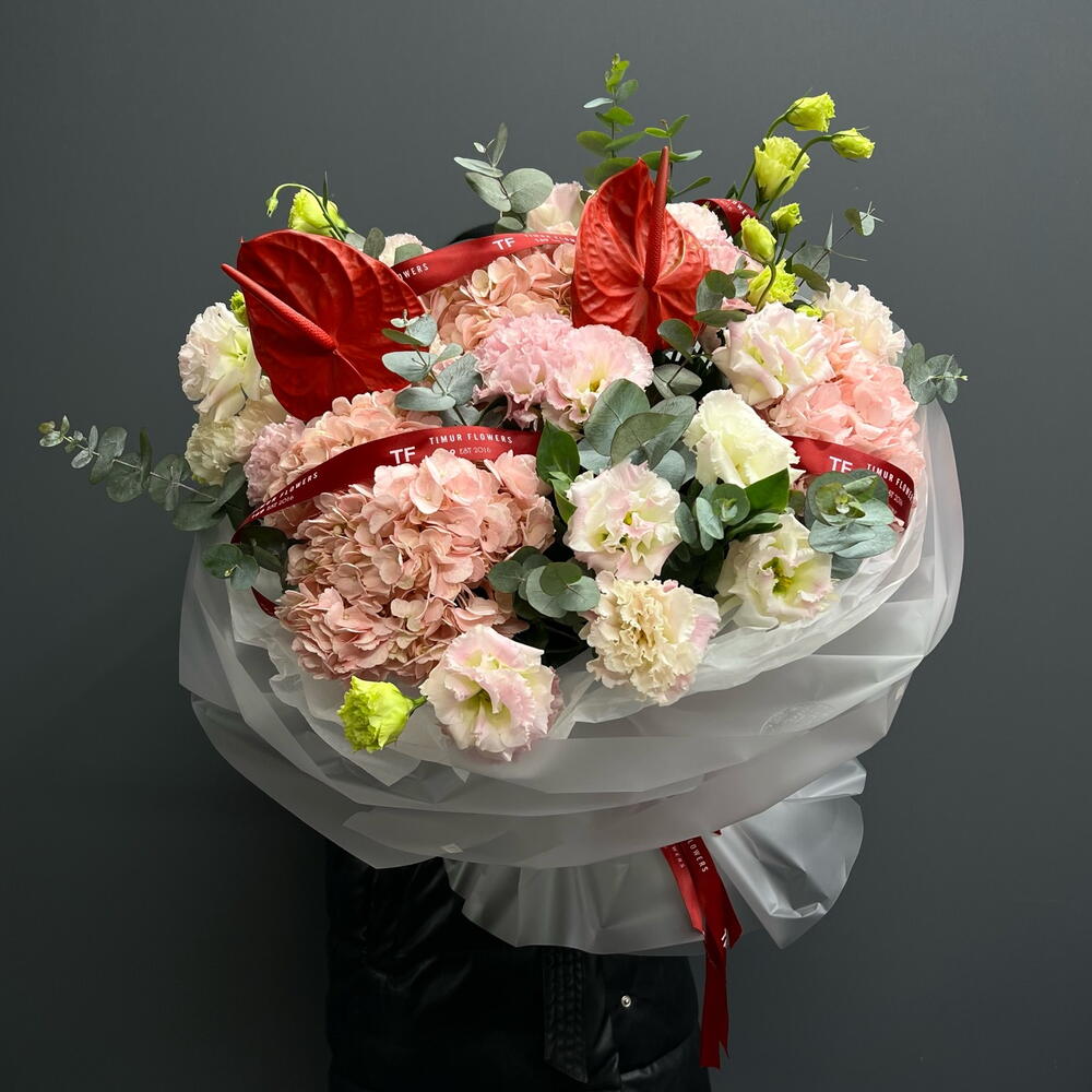 Премиум букет с Антуриумом, гортензией и лизиантусами